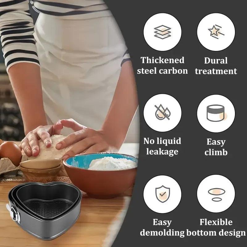 - Quick Release Design: Includes a springform buckle with a leak-proof seal for mess-free baking. The spring latch allows the base to separate from the outer tray, making it easy to lift your creations.