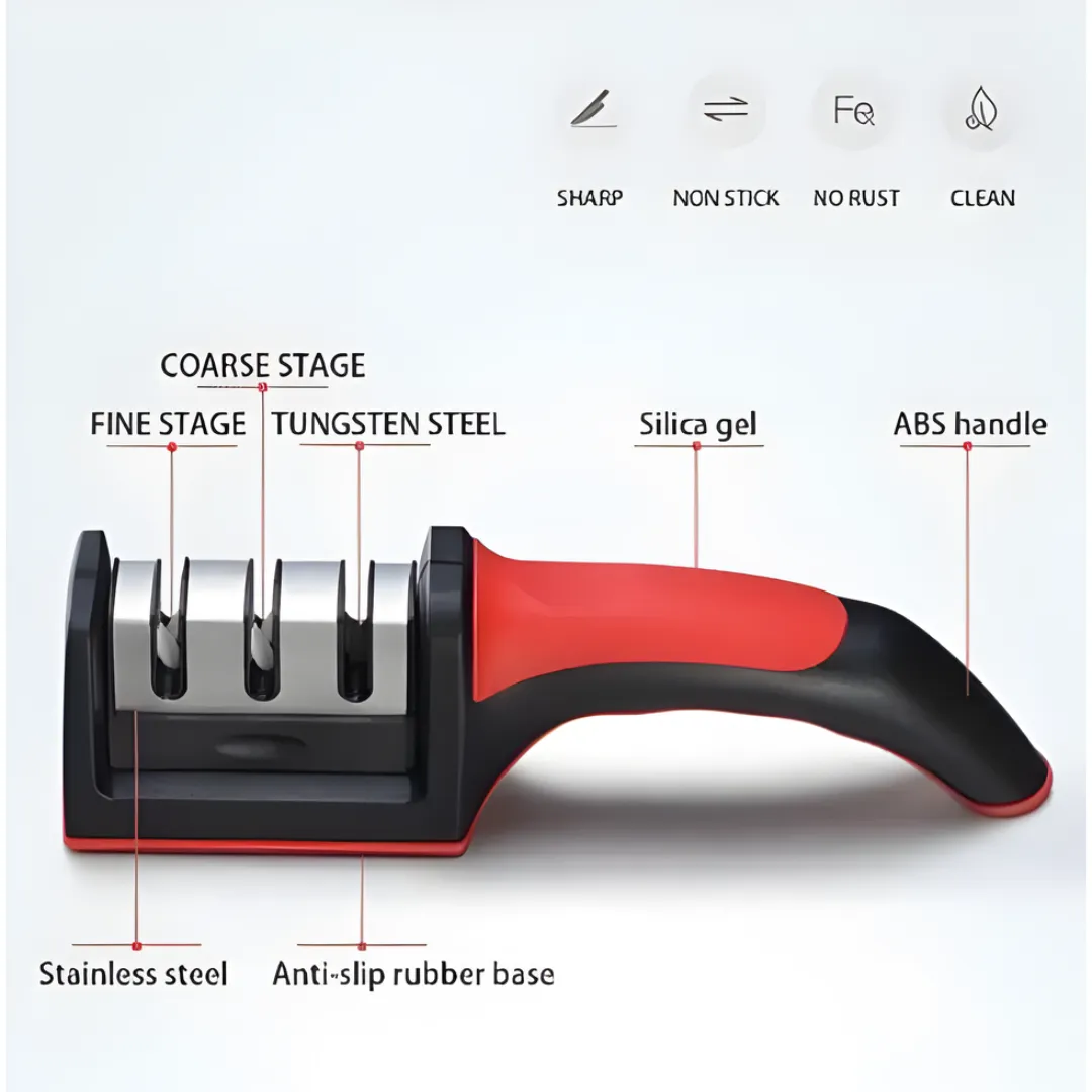 Designed for convenience and precision, the 3-Stage Knife Sharpener delivers reliable performance, safe handling, and professional-quality sharpening—making it an essential tool for every kitchen.