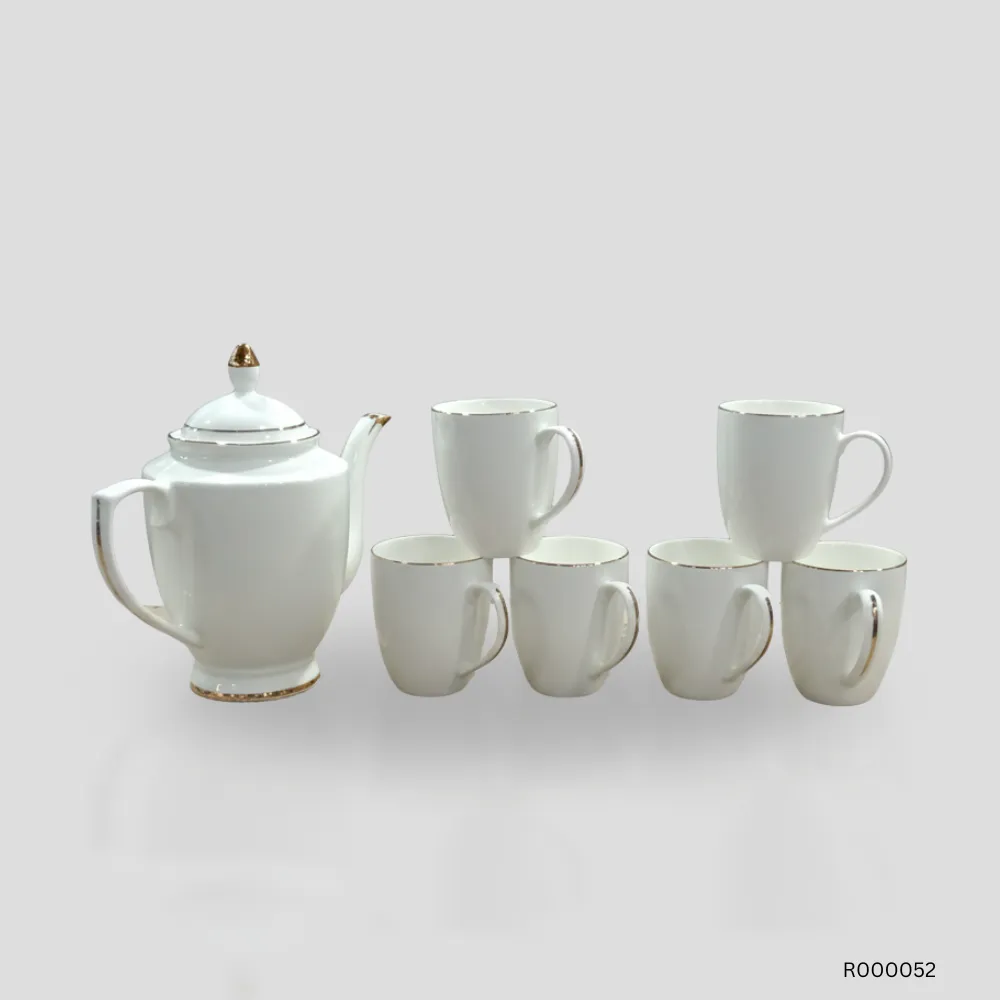 Bone China Coffee Set with Gold Line | Set of 6 Cups with Teapot | Premium White Tea Set | Suitable for Gifting, Home & Office Use - Cstore – Shop from Thousands of Sellers in One Place