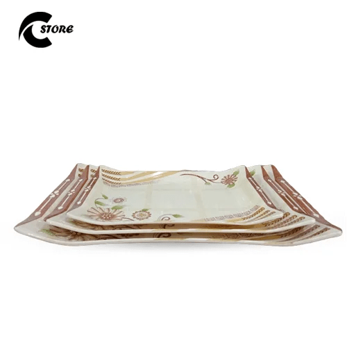 Coming together in a set of 3, the 3Pcs Serving Tray Set combines durability, elegance, and everyday functionality in a serving solution that is sophisticated and incredibly useful. Each melamine tray in this serving tray set is made of 100% new melamine and looks, smooth, glossy, and ceramic; highly finished, yet with considerably less risk of breaking. Whether serving rice, snacks, desserts, or appetizers, these trays will add a touch of elegance to your table setting.