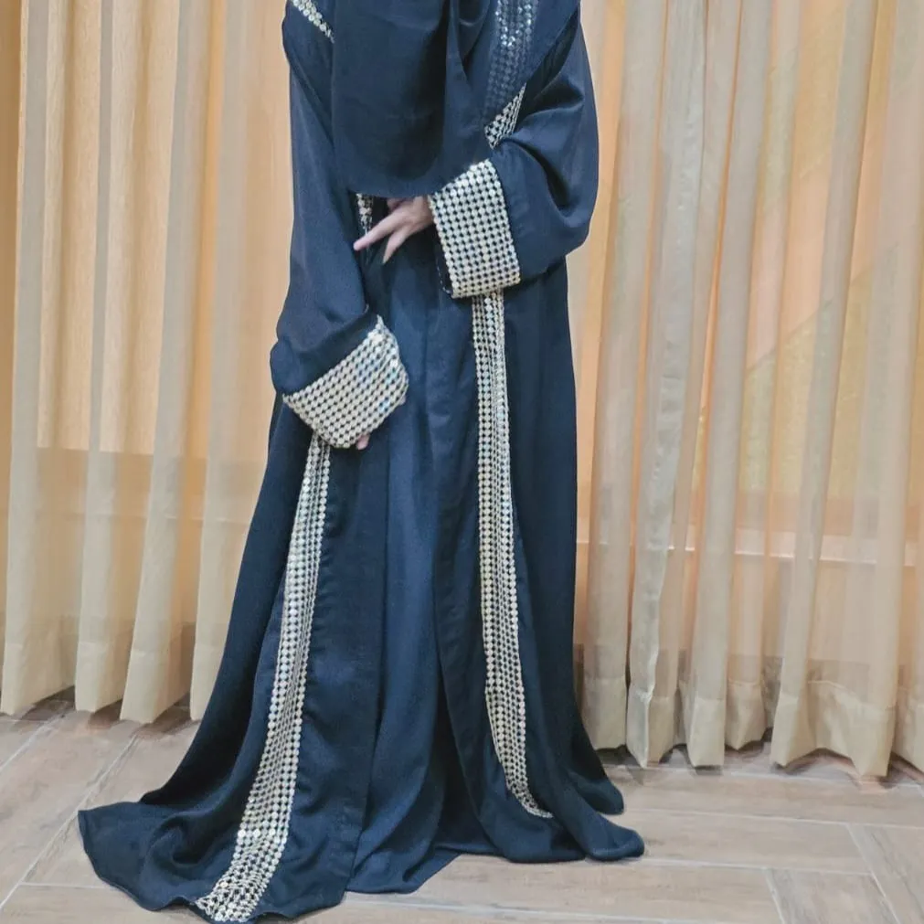 The Golden Gleam Abaya is designed in a refined upper style, offering a graceful layered look that can be styled effortlessly with your choice of inner for versatile wear.