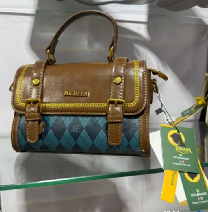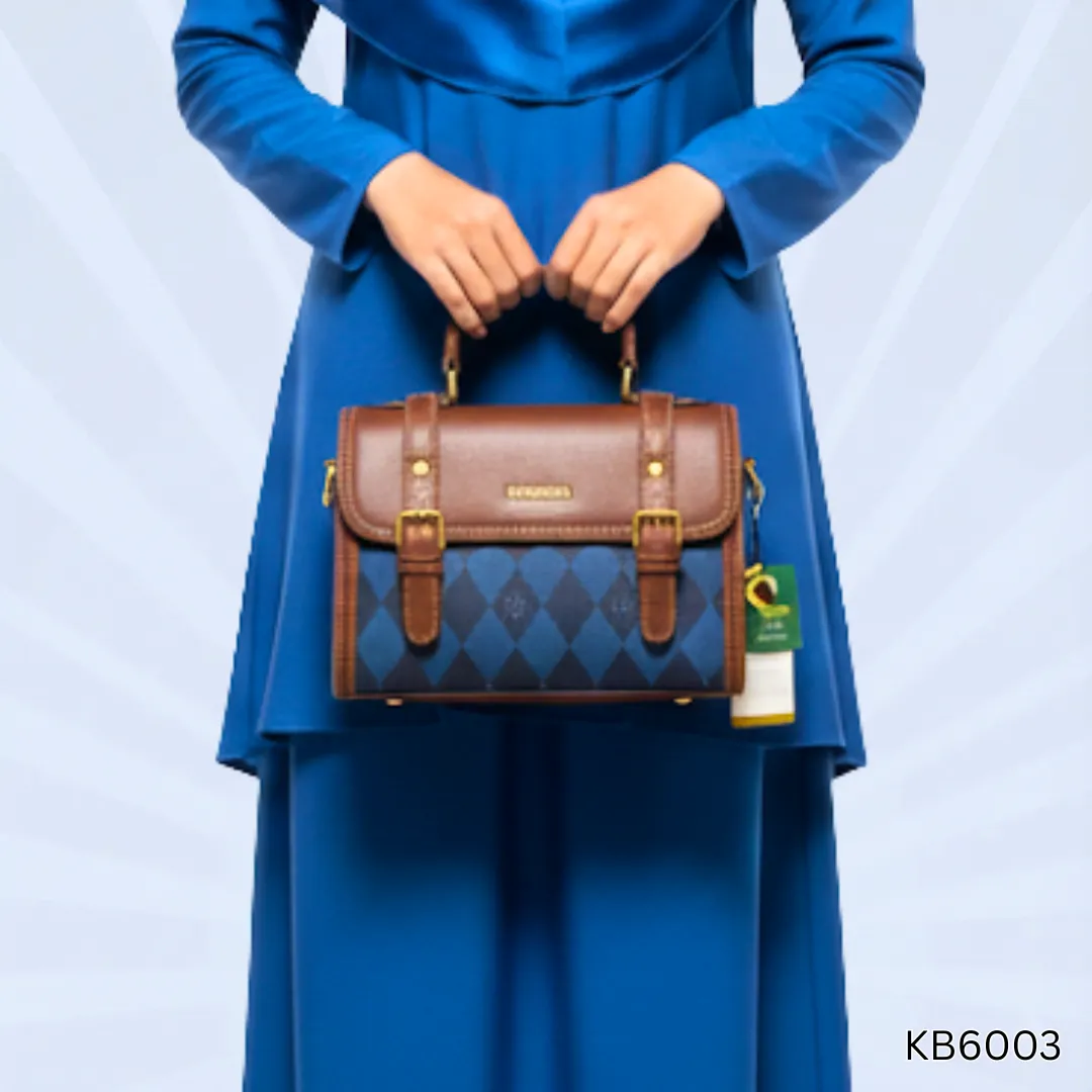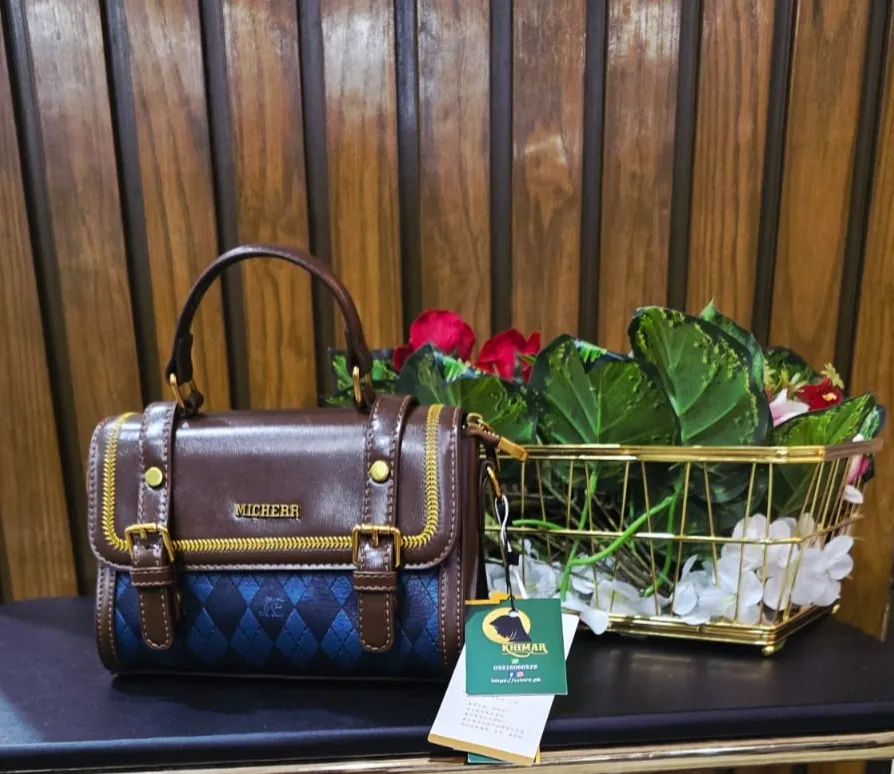 Elevate your everyday style with the elegant Heritage Check Handbag, designed to blend classic patterns with modern sophistication. Featuring a rich blue diamond-checkered base paired with a brown flap, this handbag stands out with refined buckle detailing and gold-tone stud embellishments for a polished, premium look.