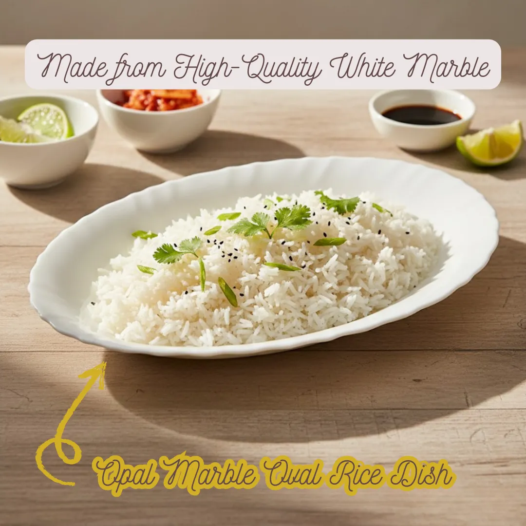 The Opal Marble Oval Rice Dish combines elegance, strength, and versatility—making it an essential piece for stylish serving and refined dining experiences.