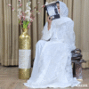 - Delicate White Embroidered Net Front: The front of the abaya is beautifully detailed with soft white embroidery on a fine net fabric, offering a luxurious and timeless appeal perfect for formal and festive occasions.