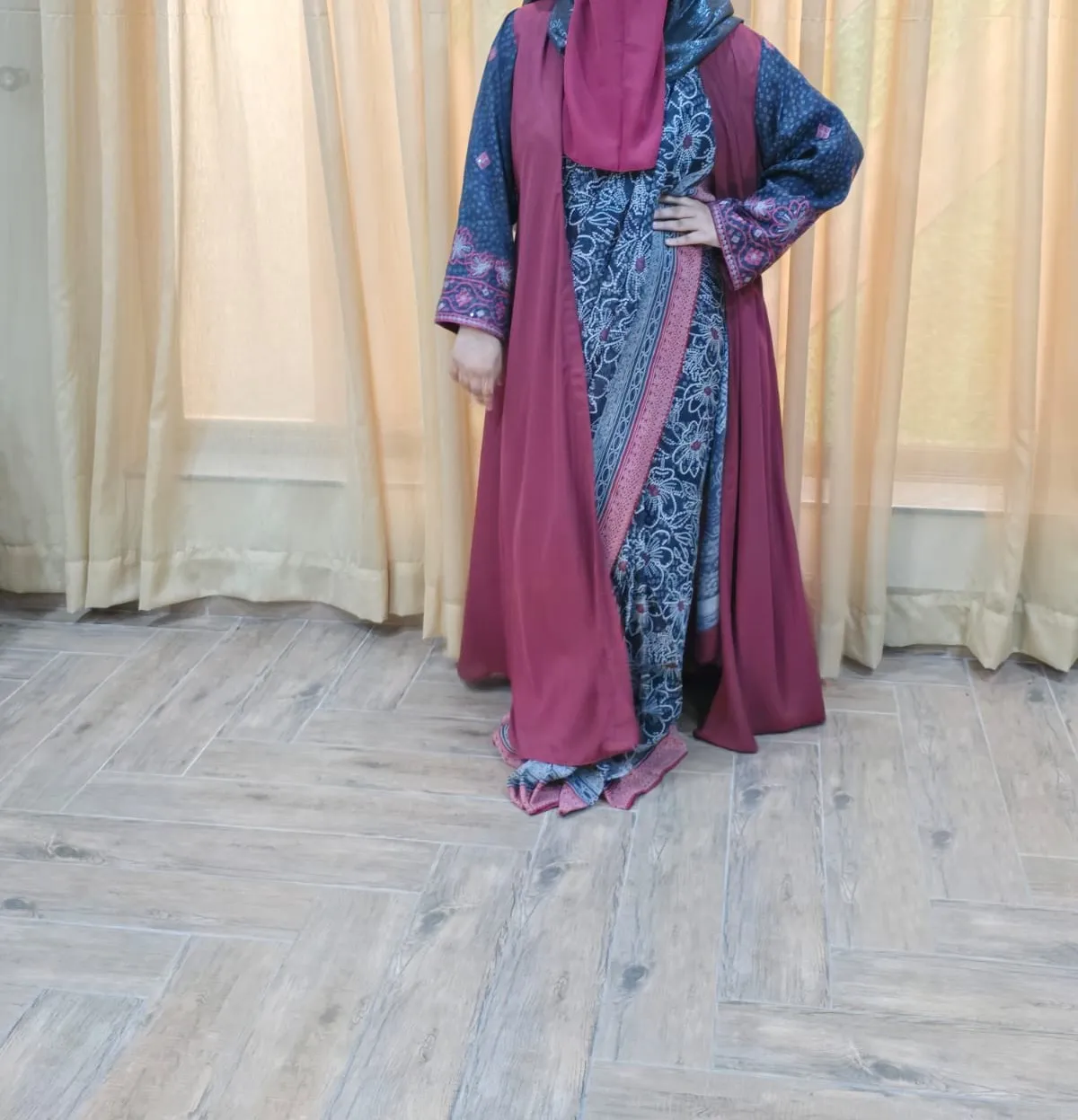 Rose Radiance Abaya | Saree-Style Chiffon Chunri Saree with Deep Crimson Georgette Upper & Embroidered Sleeves | Festive Semi-Formal Wear - Cstore – Shop from Thousands of Sellers in One Place