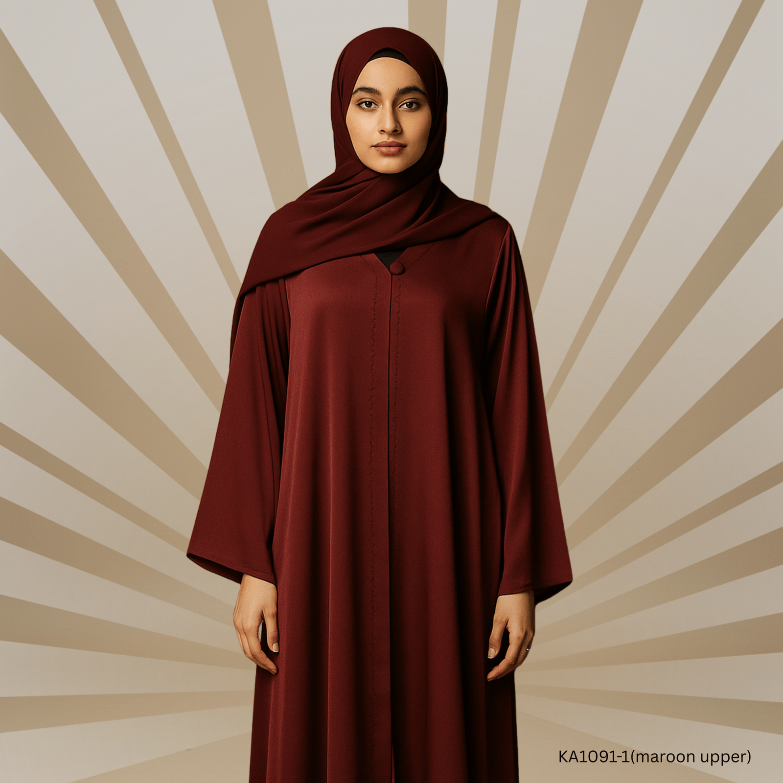 Zahra Plain Upper | Mahroon & Zinc Color | Elegant Korean Nida Abaya Jacket | Modest Outerwear for Everyday & Casual Wear (Without Inner)